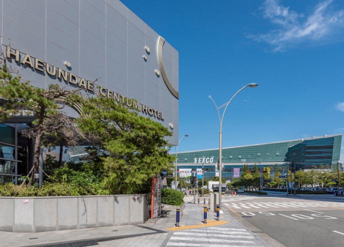 해운대바닷가 근처는 아니지만 벡스코가 앞에 있어서 좋아요.