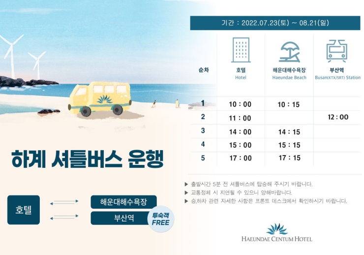 숙박 후 부산역까지 11시에 셔틀버스도 있어서