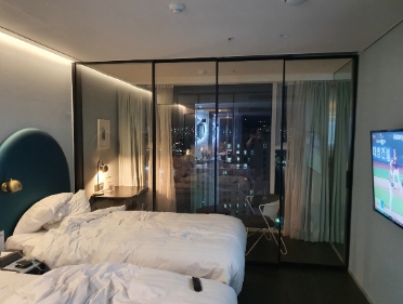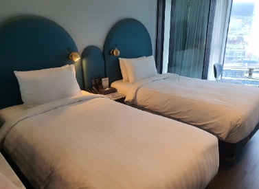 룸 컨디션은 기본 트윈룸이었는데 창문이 엄청나게 커서 시야도 트이고 깔끔함이 더욱 돋보이는 숙소였습니다!