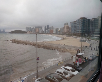 문열고 들어가면 자동으로 커텐이 열리면서 해운대 바다가 쫙 들어옴. 사장님 센스 완전 굿!