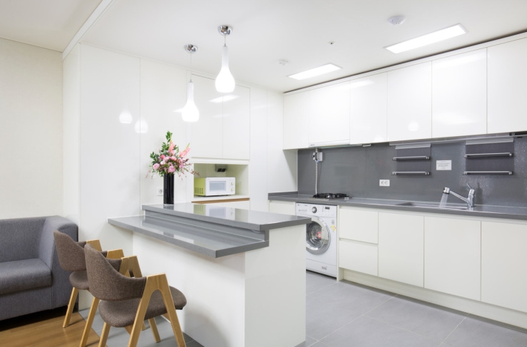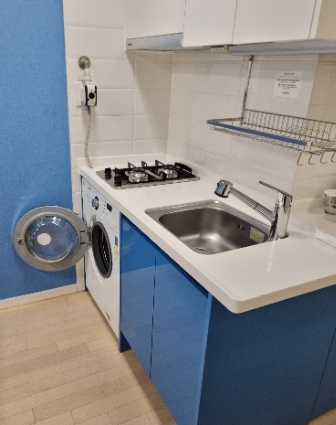 나름 싱크대에 세탁기 전자렌지 다 갖춰져 있어 꽤 편리했어요