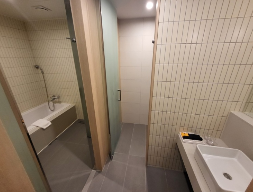 방은 랜덤 배정이었는데 욕조가 있는 방을 원해서 체크인 할때 여쭤봤더니 욕조가 있는 방으로 변경해주셨어요