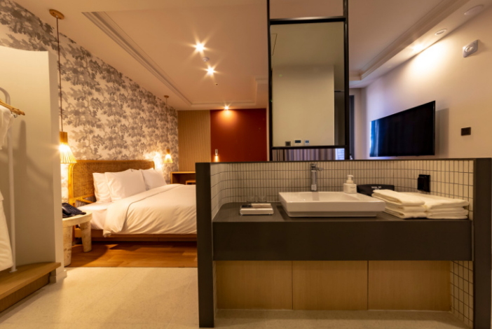방도 깨끗했고 욕조고 깨끗했습니다 흔치 않은 인테리어로 꾸며져 있어서 편하게 쉬다가 왔습니다