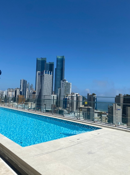 해운대역과 가까워서 수영장에서 신나게 놀고 주변에서 음식도 먹고 바다도 갔다 왔어요.