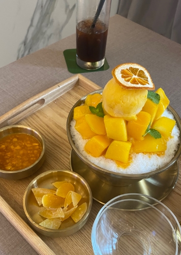 라운지도 예쁘고 망고빙수 할인권도 주셔서 먹었는데 망고빙수도 넘 맛있었어용ㅎㅎ