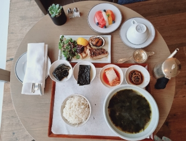 조식 가짓수는 적은데 따로 주문할수 있어서 만족스러웠고 생각보다 붐비지않아서 괜찮았습니다.