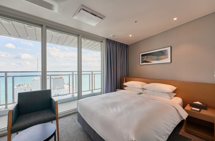 룸 업그레이드 받아서 하프오션 뷰 배정받았는데 해운대 바다가 보여서 좋았어요..