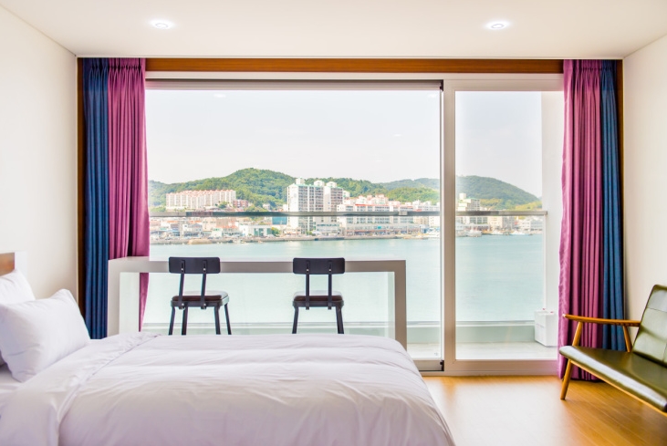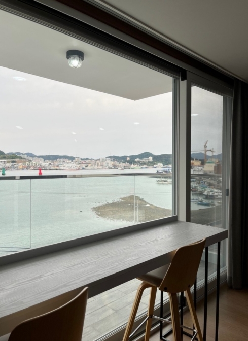 5층의 방을 들어갔을때 바다가 바로 보이는 전망에 기분이 정말 좋았어요.