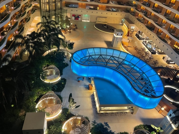 을 선사합니다 로맨틱한 야경과 반짝이는 별빛 아래 수영을 즐겨보세요