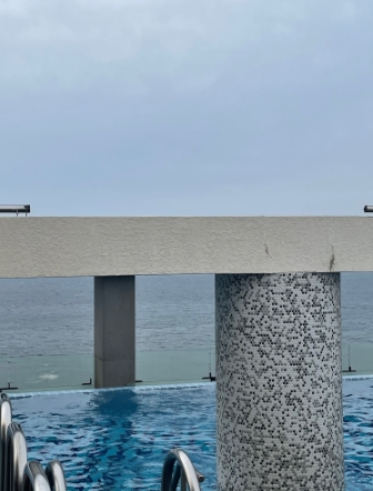 4. 수영장이 기둥때문에 뷰가 가려져서 조금 아쉽긴 한데 온수풀 따뜻하고 좋았어요.