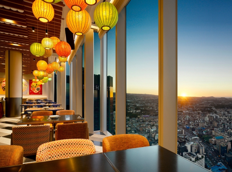 전망 맛집이에요 도시 풍경이 천장부터 바닥까지 창문이 유리로 되있어서 전망은 끝내줘요