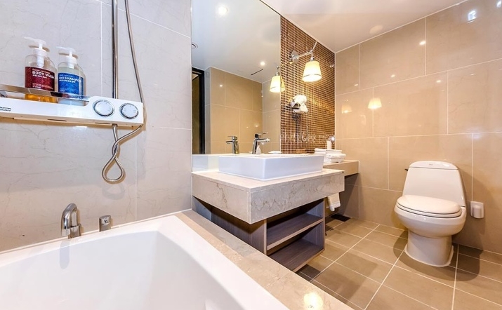 화장실도 욕조도있고 변기는 따로 물이 튀지않게 따로되있어서 좋았는데욕조랑 침대사이에 벽에 공간이 있는지 ㅠㅠ