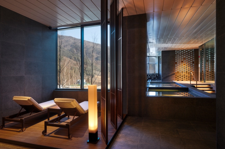 야외풀 수심은 깊지 않아 유아들이 놀기 좋고 산세와 공기가 좋아 스파와 힐링이 동시에 되는 느낌이었음. 실내풀은 30M로 6시에 가서 유산소 운동하기에 좋았음. 사우나는 2개의 온탕과 1개의 냉탕, 그리고 빙수용 얼음이 시원하게 나옴. 객실이 윗층 의자 끄는 소음이 계속 나는 것은 살짝 아쉬웠음. 방음.