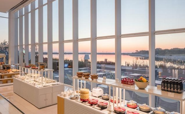 일출, 일몰을 감상할 수 있는 전 객실 발코니 객실, 파노라믹 뷰를 자랑하는 레스토랑과 로비에서 서해의 아름다운 자연경관을 감상할 수 있습니다