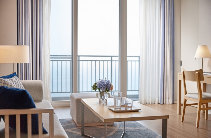 삼면 바다 조망을 갖추고 있어 모든 객실에서 동해안의 환상적인 에메랄드빛 바다를 느낄 수 있습니다