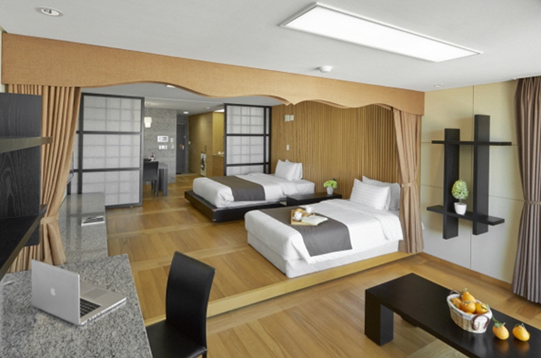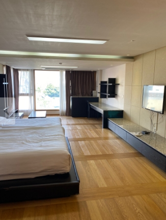 가족숙소로 좋아요. 제주 가성비 호텔들은 객실이 좁아 불편한데 여기는 확 트여서 크고 주방 객실 분리되어있어 좋네요. 단 청소 상태가 좀 미흡하고, 낡은감이있습니다. 글고 주차장에 전기 충전 시설이 없는게 단점이네요.