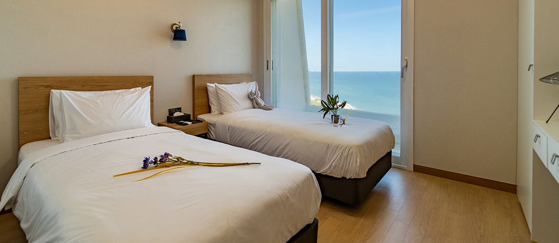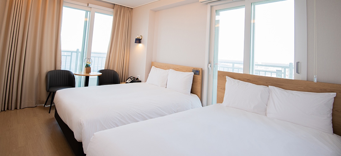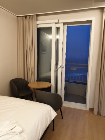 처음 묵어요 시설이 너무 좋아서 깜짝 놀랐어요 일단 주차시설이 너무 잘 되어있고 건물 연결된 편의점과 카페가 진짜 편리했어요 바닷가 바로 옆이라 전망 없이도 그냥 돗자리 들고 나와서 맥주 한잔하니 정말좋네요 가성비 좋게 잘 놀고있는중에 리뷰씁니다ㅎㅎ 숙소는 이불이 살짝 뭐가 묻은게 보이지만 나름 깔끔하고 좋네요