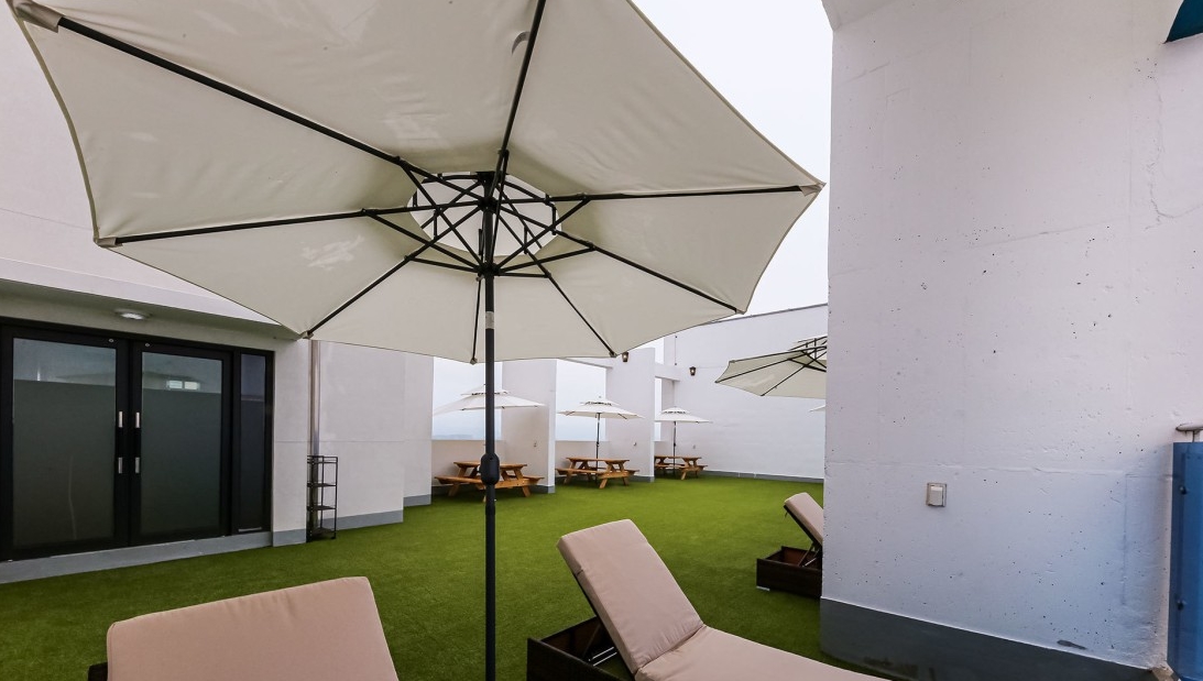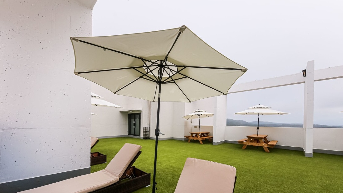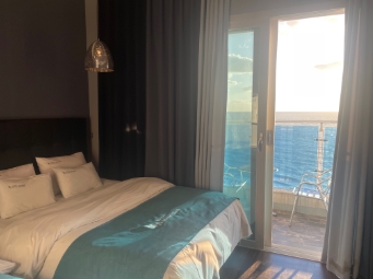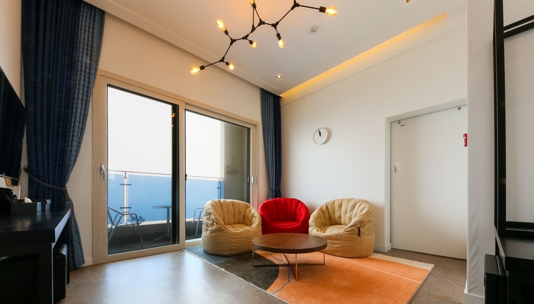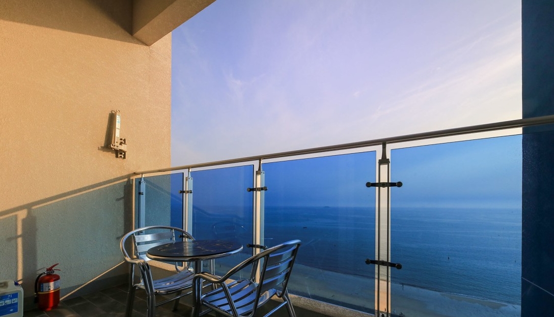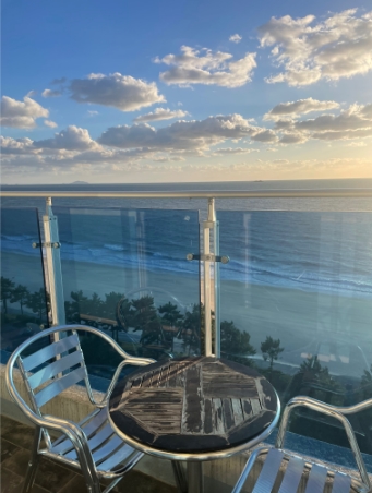 저희는 5층에 배정받았는데 객식 들어가니 엄청 깔끔하고, 무엇보다 테라스와 테라스에 테이블, 의자가 있어서 너무 좋았습니다. 사실 이것때문에 고른게 가장 크긴한데 바닷가 보면서 파도소리 듣고 멍때리는게 얼마나 힐링되는지 몰라요.