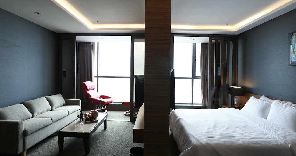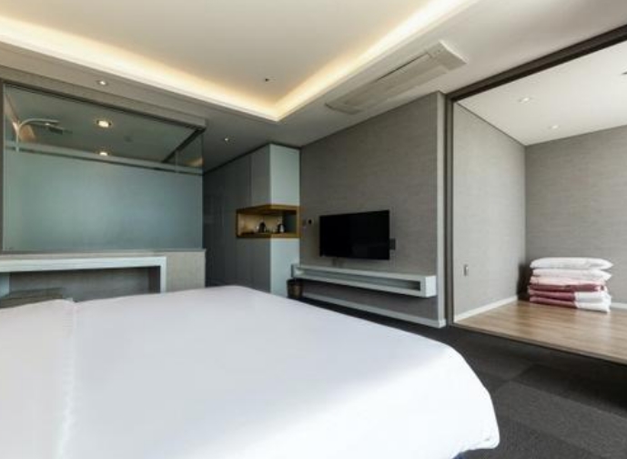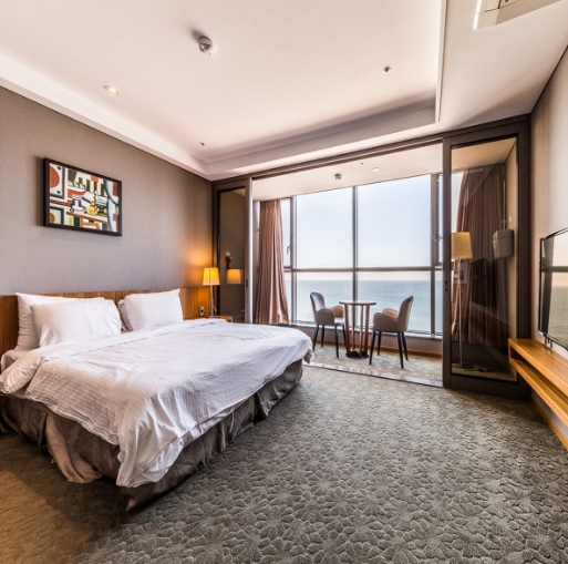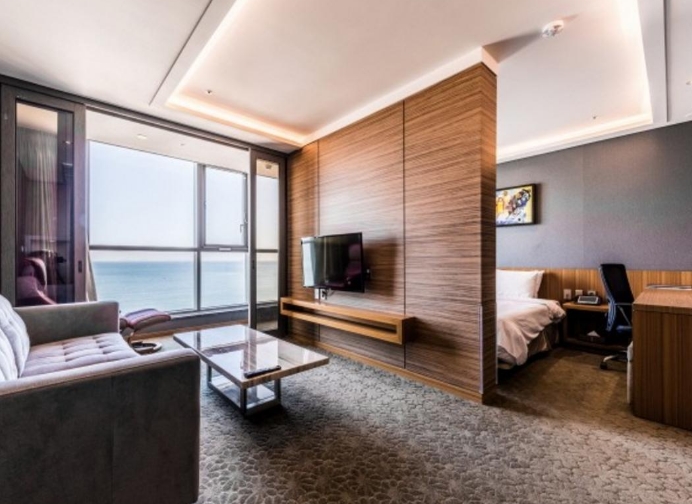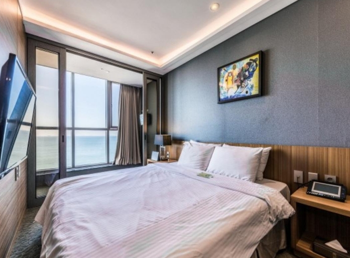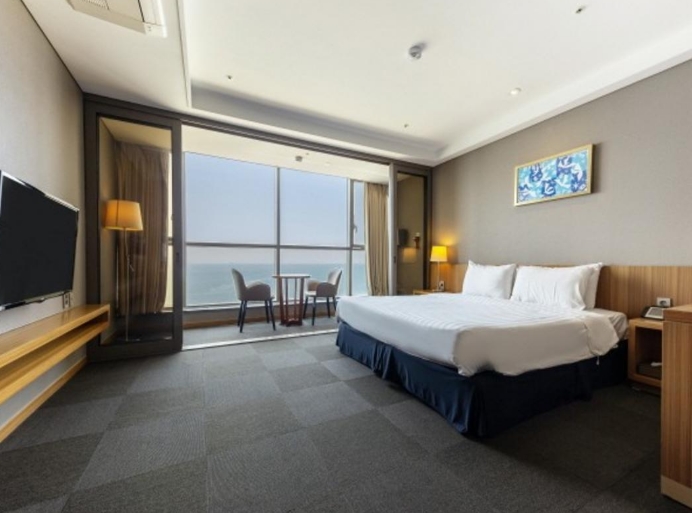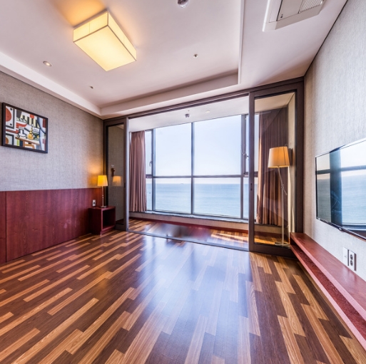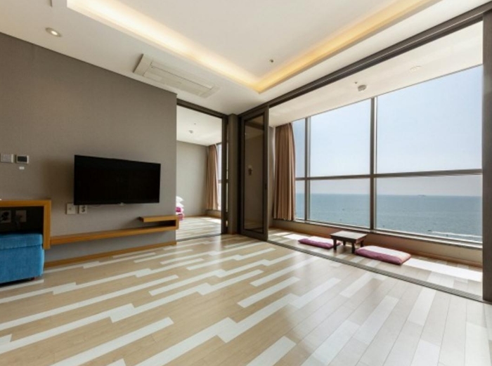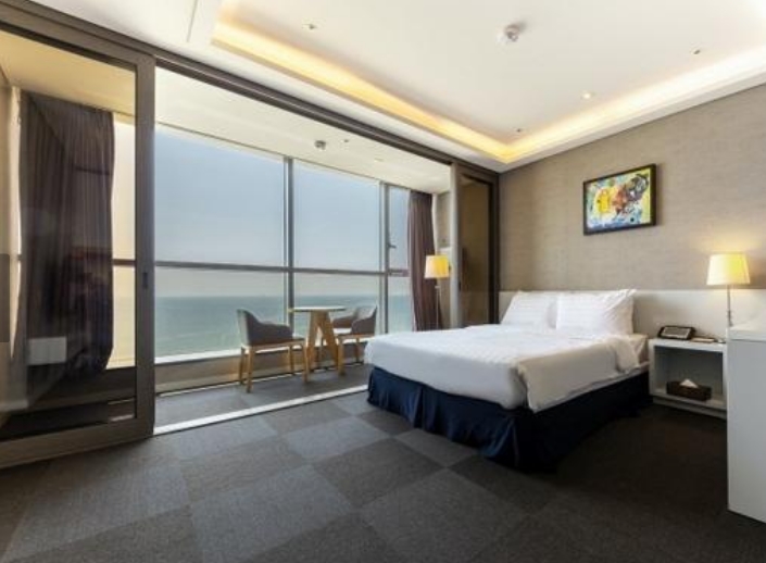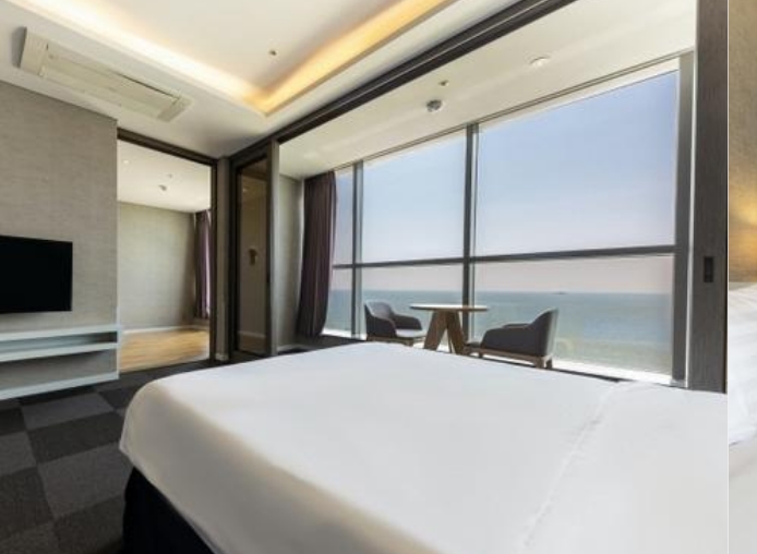 위치가 바다뷰라서 정말 좋았어요!!! 저희는 아이가 있어서 방 1개 달려있는 온돌방으로 예약했어요. 화장대에 의자 없고 냉장고 작은 편. 그리고 화장실 배수가 잘 안되고 유리 윗부분 투명이라서 가족들 조금 당황했어요. 근데 파티용 커튼으로 가렸어요. 저는 신경 마니 쓰일 정도는 아니였는데 개인 차이일것 같아요.