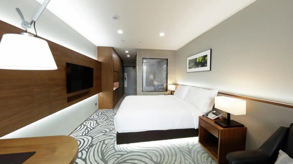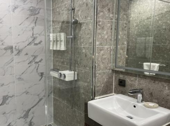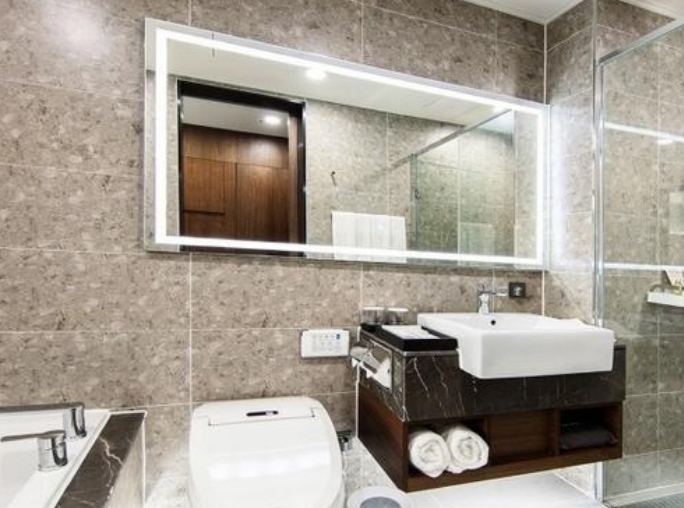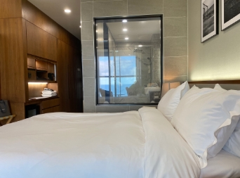 욕실은 투명창에 하얗게 해주는 스위치도 있었는데 밤에 잘때 화장실 가면 빛 때문에 침실에 빛이 비춰져서 자칫 수면을 방해할 수도 있던터라 잘때 화장실 불키는 경우를 생각해서 창에 뭔가 빛도 가려줄수 있게 하면 더 좋을 것 같아요~! 침대도 좋고 이불도 헝가리 구스로 좋았습니다~!