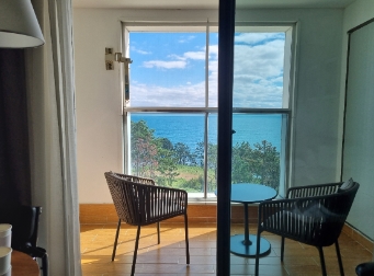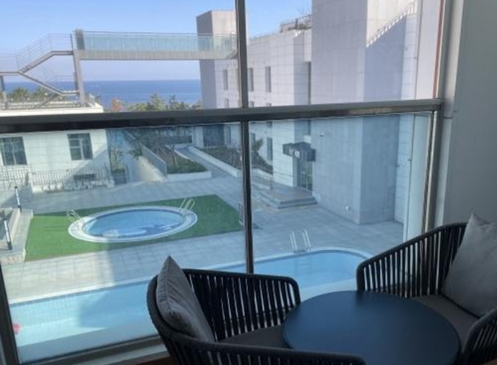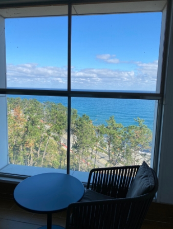 하지만 오션뷰의 면모를 과시하듯 발코니를 통해 바라보는 바다의 풍경은 진짜진짜 멋있었어요. 파도치는 소리를 자장가삼아 꿀잠 잤답니다. 에어컨도 빵빵했고 욕실의 수압도 좋아서 시원하게 편히 쉴 수 있었던 숙소였어요. 다만 개선점이있다면,,,청소 상태가 좋지 않은 점과 직원분들의 서비스정신이 거의~없다는거,,,,.대체로 불친절하고 손님이 보지않을 땐 의자에앉아 옆에 직원과 잡담하고 인사를해도 받지않는등,,,,서비스 마인드가 무척이나 부족하게 느껴져서ㅜㅜ