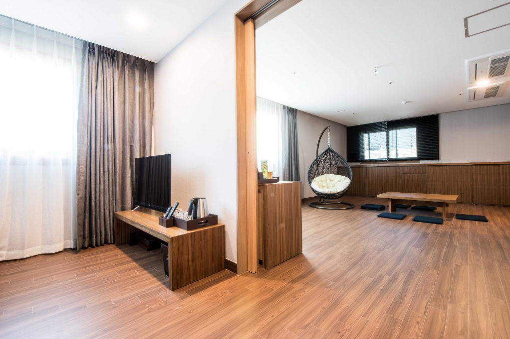 위치가 좋아요. 황리단길, 첨성대 다 차로 가까운 거리라 다니기 좋았어요. 그리고 침대가 저상형 패밀리침대라 너무 좋아요. 아기가 굴러다니며 자는데 안전해서 좋았고 바닥도 마루라서 좋았네요. 아기가 편하게 푹 잘잤어요.