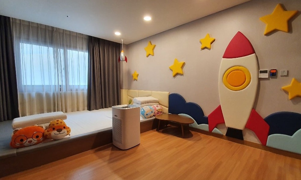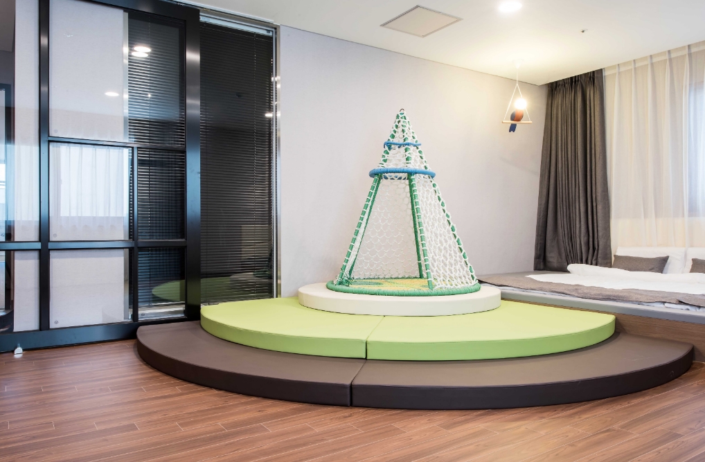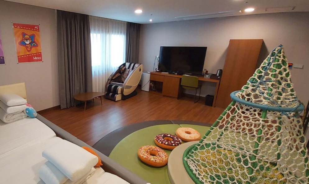 룸은 그럭저럭 한루 보내긴 나쁘지 않았지만 그물놀이 바닥에 까맣게 때껴있고 캐릭터 쿠션들도 언제 빨았는지 알수없게 지저분 했습니다 키즈룸 컨셉이면 청결이 첫번째인데 놀라웠어요 그리고 가장 황당한거! 냉장고가 거의 모텔수준의 크기에 그나마도 강으로 해두었는데도 하나도 시원해지지않고 아기 이유식,분유 등 넣어둘게 많았는데 당황스러웠습니다.