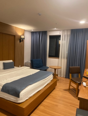 아이랑 가족여행으로 딱 좋은곳을 찾아서 하루 잘 머물다왔어요~벽면이 아기자기 꾸며져있는데 코로나로 집콕만 하다보니 아이가 꾸며진 방만 보고도 이쁘다며 함박 웃음이였네요. 호텔 내 식당에서 음식 배달결제가 가능해서 너무 좋았습니다. 맥주에 바로 튀겨오는 튀김 야식으로 먹으니 매우 맛있었습니다. 다만 방에는 전자레인지가 없어서 곤란했는데 호텔 내 편의점에서 사용가능하다셔서 해결했어요.