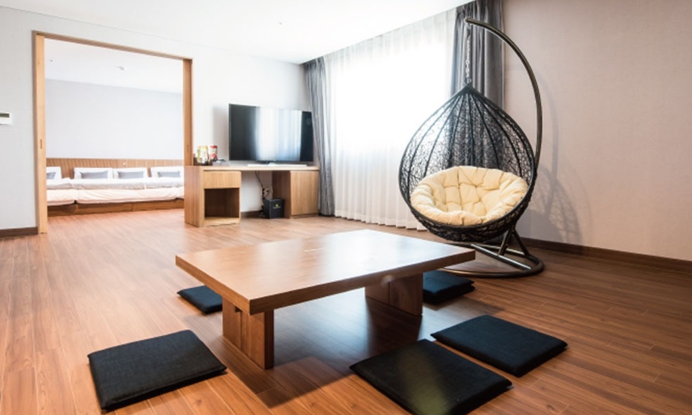 출입구랑 화장실도 중문으로 가릴 수 있고 중문 밖이라 아기가 사고칠 일 없어서 편했어요.살짝 뜯어져서 낡거나 먼지 머리카락 청소 좀 덜된부분이 있긴했으나 직원분들도 친절하셨고 아기 다니고 여행다니기에 성수기에 이정도 가격에 이정도 공간이면 만족합니다. 잘 지내고갑니다.