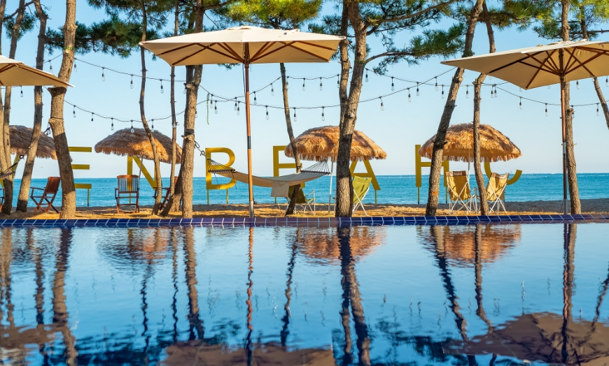 사진엔 좀 넓어보였는데 그렇게 넓지는 않습니다! 뷰가 좋고 바로 앞에 해변이 있는 건 좋은 메리트예요. 직원분들이 적당히 관여하지않는게 ㅋㅋ좀 편하긴했는데 사람에따라 안친절하다거 느낄 수도 있을거같아요. 바베큐는 연기가 너무 많이나서 좀 힘들었어요. 천막이고 뚫려있지만 연기는 위로 가니까 잘 안빠지더라구요 재료도 다 들고와야해서 꼭 고기 구워먹겟다는 거아니면 포장 해오는 거 추천해드러영. 수영장은 은근 넓고 좋았습니다! 전체적으로 깔끔하고좋았어요!