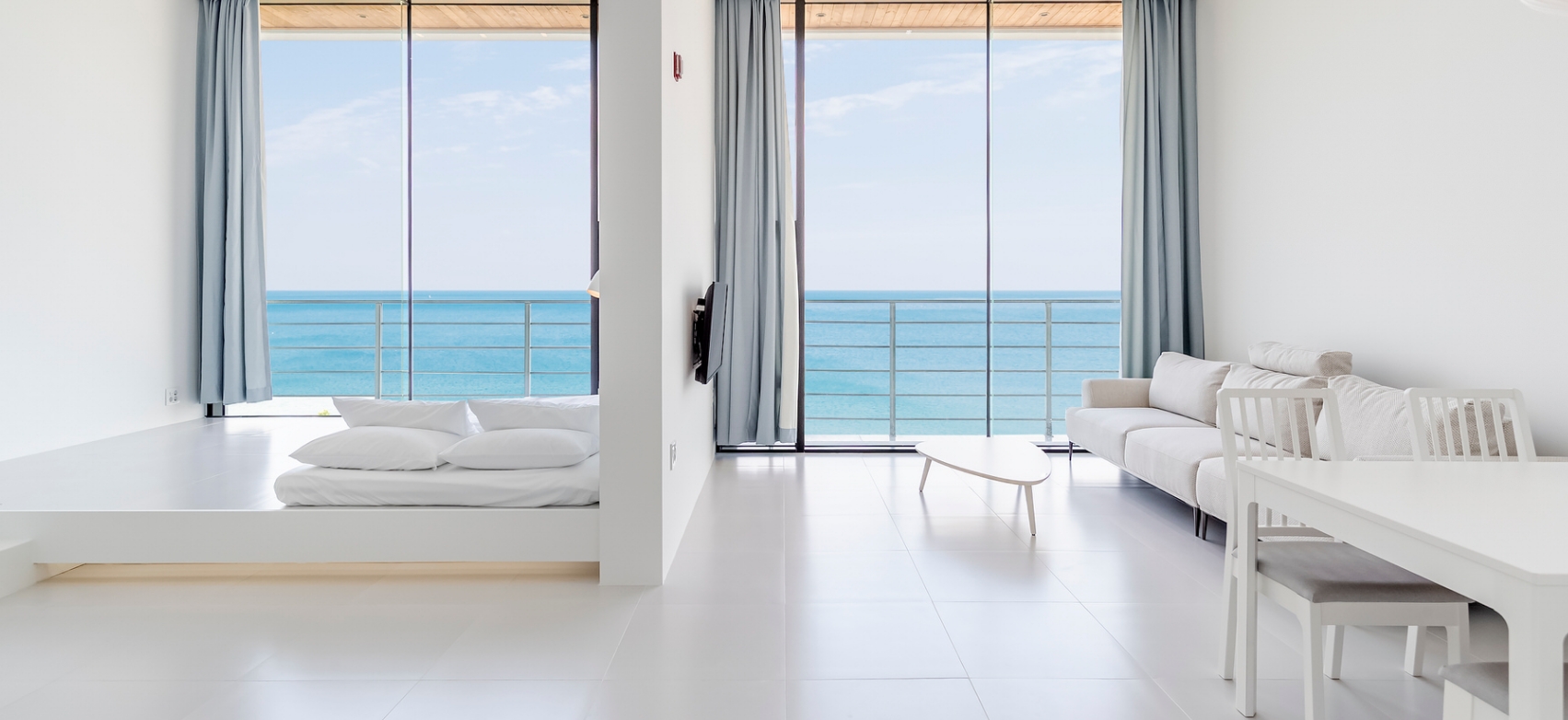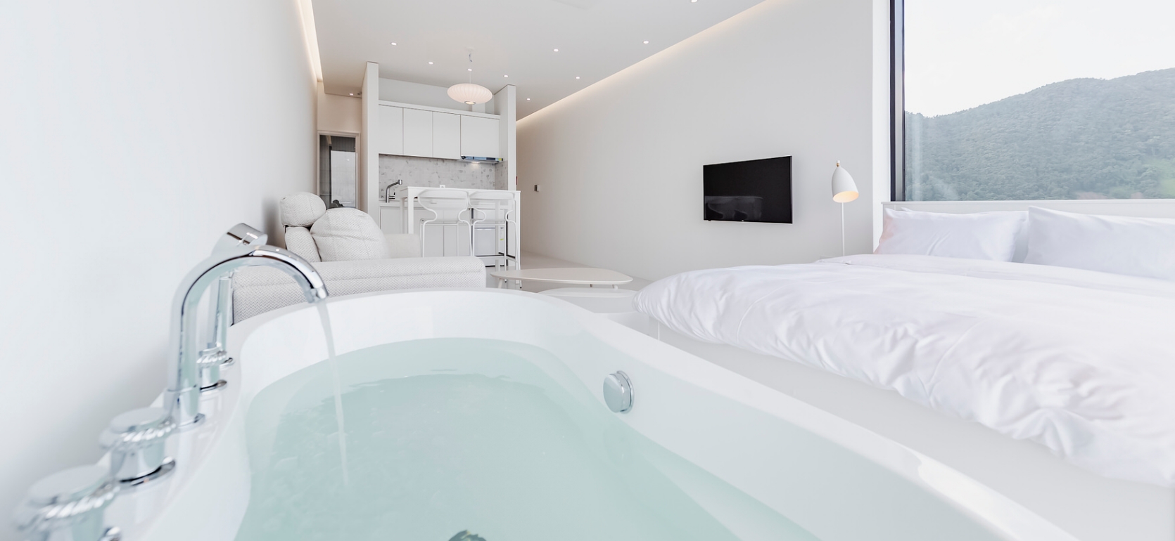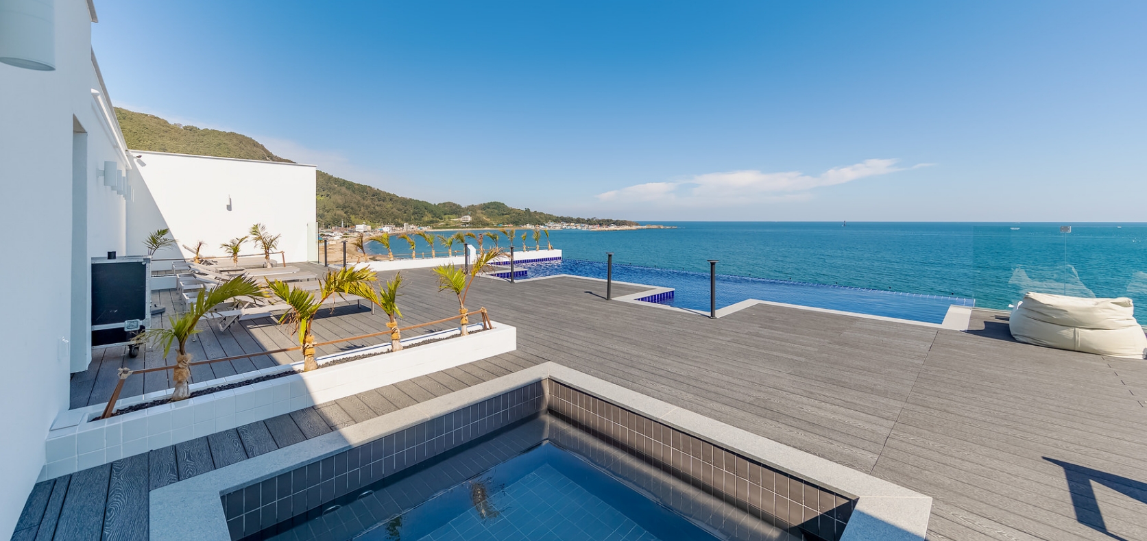 일단 위치는 좀 구석짐. 주변에 뭐가 없음. 세븐일레븐이 전부. 방음이 심각함 너무 안됩니다. 다른 방 문닫는 소리도 심각. 뷰는 좋아요. 어차피 바다 앞이라 에어컨도 시스템이었나 괜찮았고 침구류가 너무 저급이에요. 웬만한 모텔정도..전화응대가 타이트합니다.