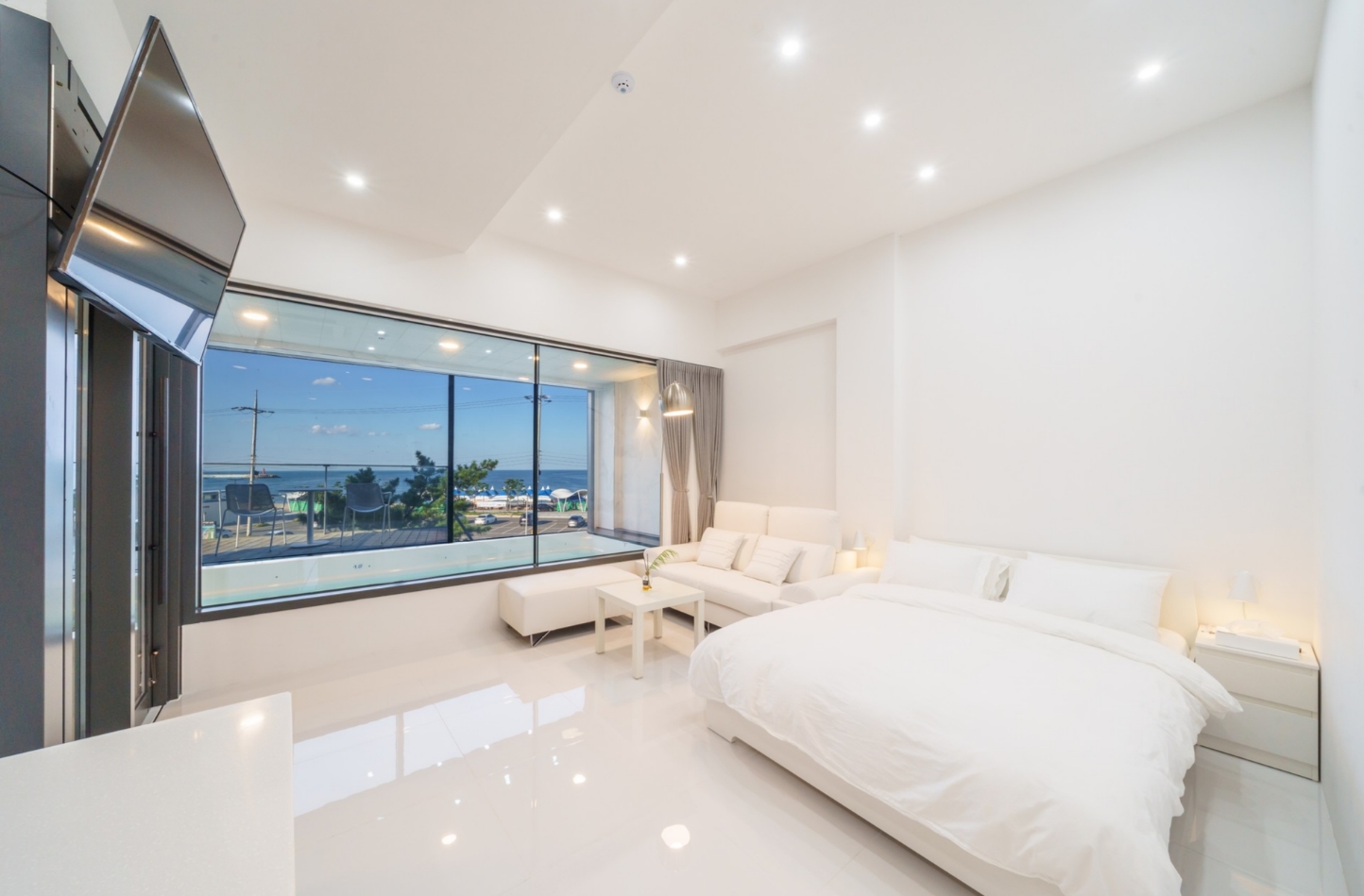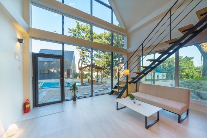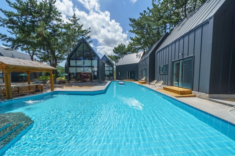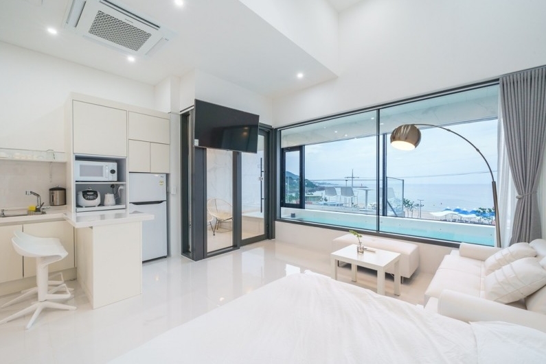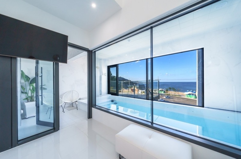수영장에 기대하고갔었는데 진짜 기대하고 가셔도될것같아요!! 물깊이도 깊지않고 튜브 하나랑 성인 두 명 드가서 놀기 딱좋구 바다가 바로보여서 더 좋아요!! 특히 밤에는 불이 들어와서 더욱 더 예쁘다는것! 아쉬운 거는 밤에 벌레가 너무 많아요..문을 닫고 있었는데도 자고 일어나니 방에 벌레가 날아다니고 있더라구요...벌레말고는 모든게 완벽했습니당! 사장님 덕분에 엄청 편한하게 쉬다가 갑니당
