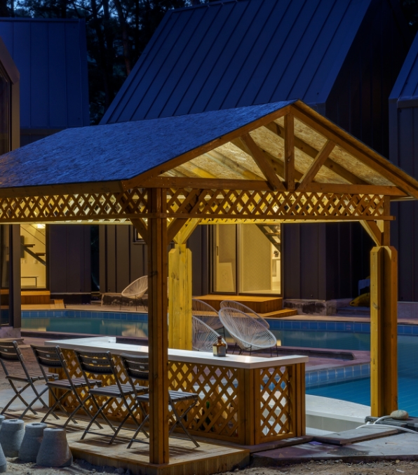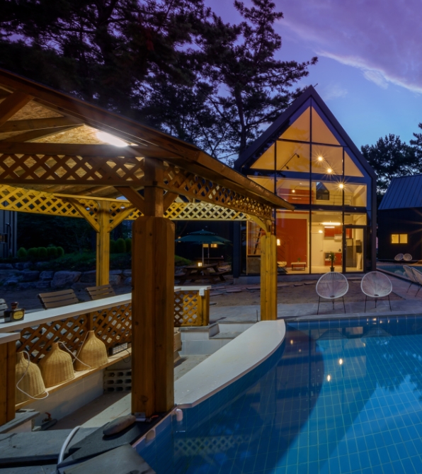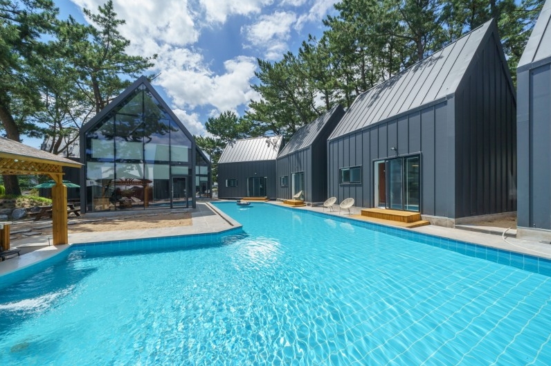야외 풀수영장이 여자 성인 기준으로 무릎 꿇으면 어깨까지 오는 정도여서 그렇게 안깊었으나 놀기에는 개인용 튜브 하나씩 있으면 좋을 거 같아요. P1 같은 경우에는 주방에 작은 창문이랑 바베큐 구울 수 있는 개인 바베큐장이랑 연결되어있어서 옮기기 매우 쉬웠고 주변에 편의점에서 이것저것(고기, 폭죽, 튜브 등) 팔고 있으니 참고하세요
