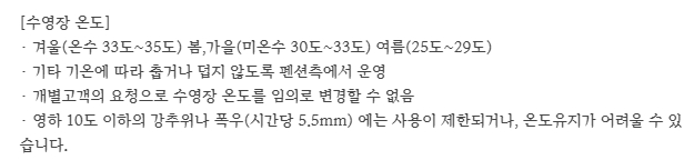 두번째ㅡ체크인하고 아이들과 바로 수영장으로 고고! 물이 따뜻합니다! 아 따뜻하다 이말이 저절루 나와요 그냥~다른 곳에서 온수 추가 요금주면서 너무 미지근한데 온수 더 틀어달라고 사정하던 몇년 전의 제모습.ㅜㅜ눈으로 수온 체크 할 수 있도록 수영장 바에 온수 체크기가 크게 있어요.34~35가 계속 유지 되었어요 포레스트동의 장점이 수영 끝나고 바로 숙소로 들어갈 수 있는구조예요 아이들 물 밖에 나와서 바로 문 열고 씻으러 가면 끝! 동선이 너무 좋아요!