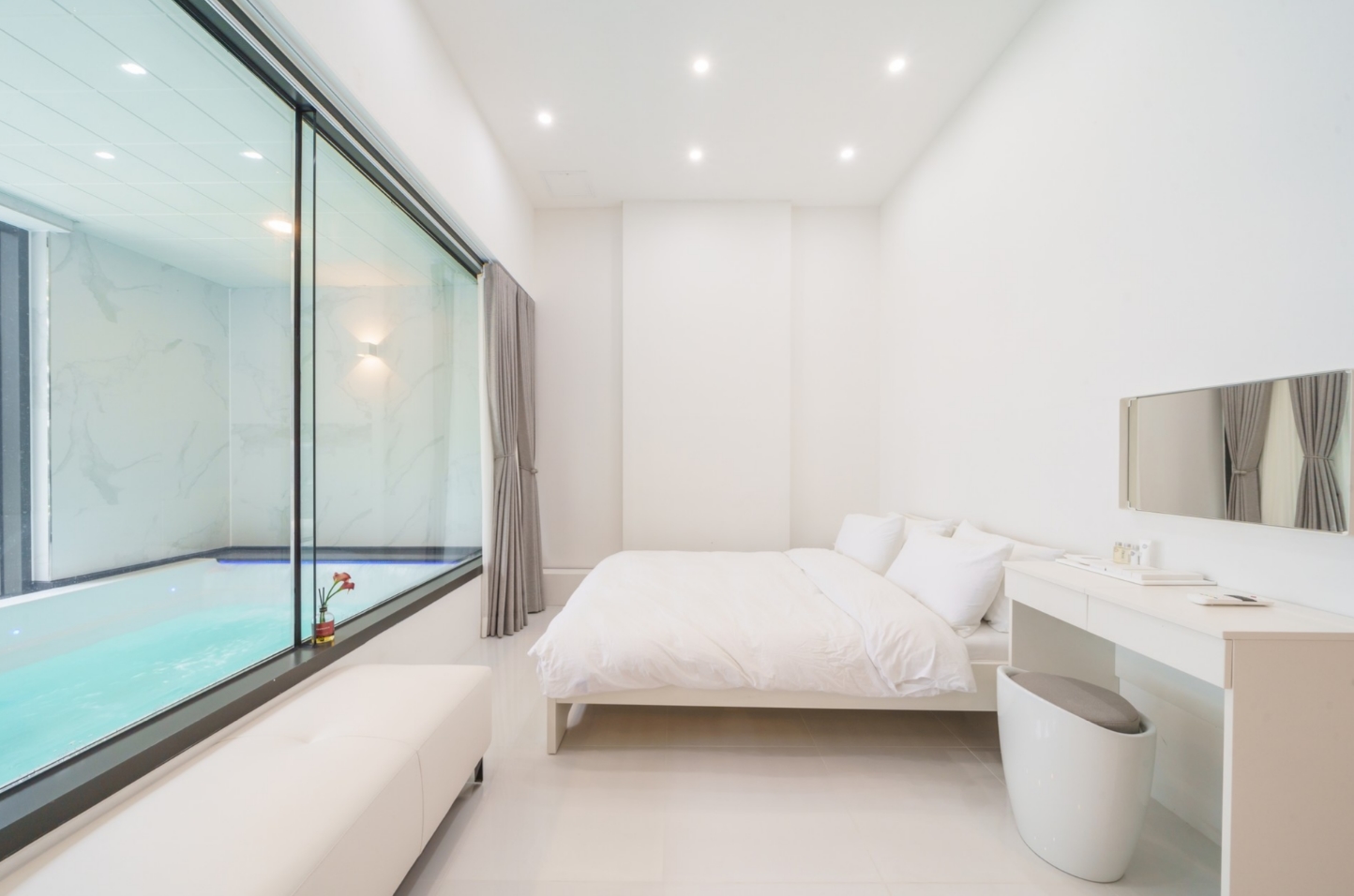 와인잔도 따로 있는데 저흰 풀장에서 마실거라 일부러 플라스틱 잔 사갔어요! 그리고 풀에 끝 쪽에 물이 폭포수처럼 나오는데 그것도 진짜 좋았어요ㅠ 그리고 크기도 정말 크고 아마 한국 풀빌라 중엔 젤 클거같아여! 청결은 물도 그렇고 숙소에 머리카락 하나 안보였어요 정말 깨끗했어요 침구도 푹신푹신하고 포근해서 불면증 있는 제가 한 번도 안깨고 7시간 푹 잤어요ㅠㅠ 최고