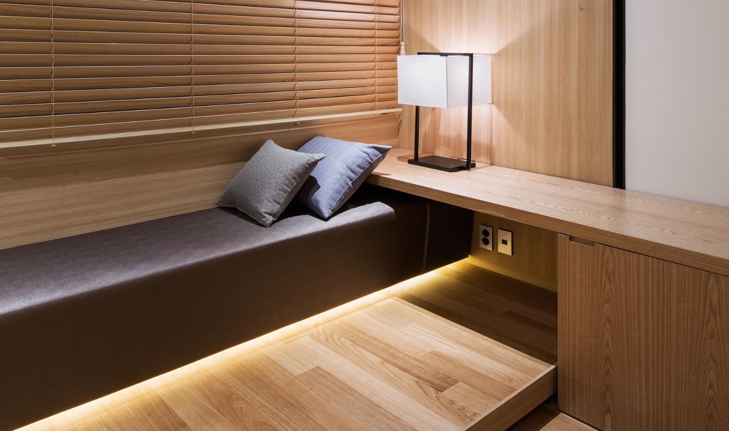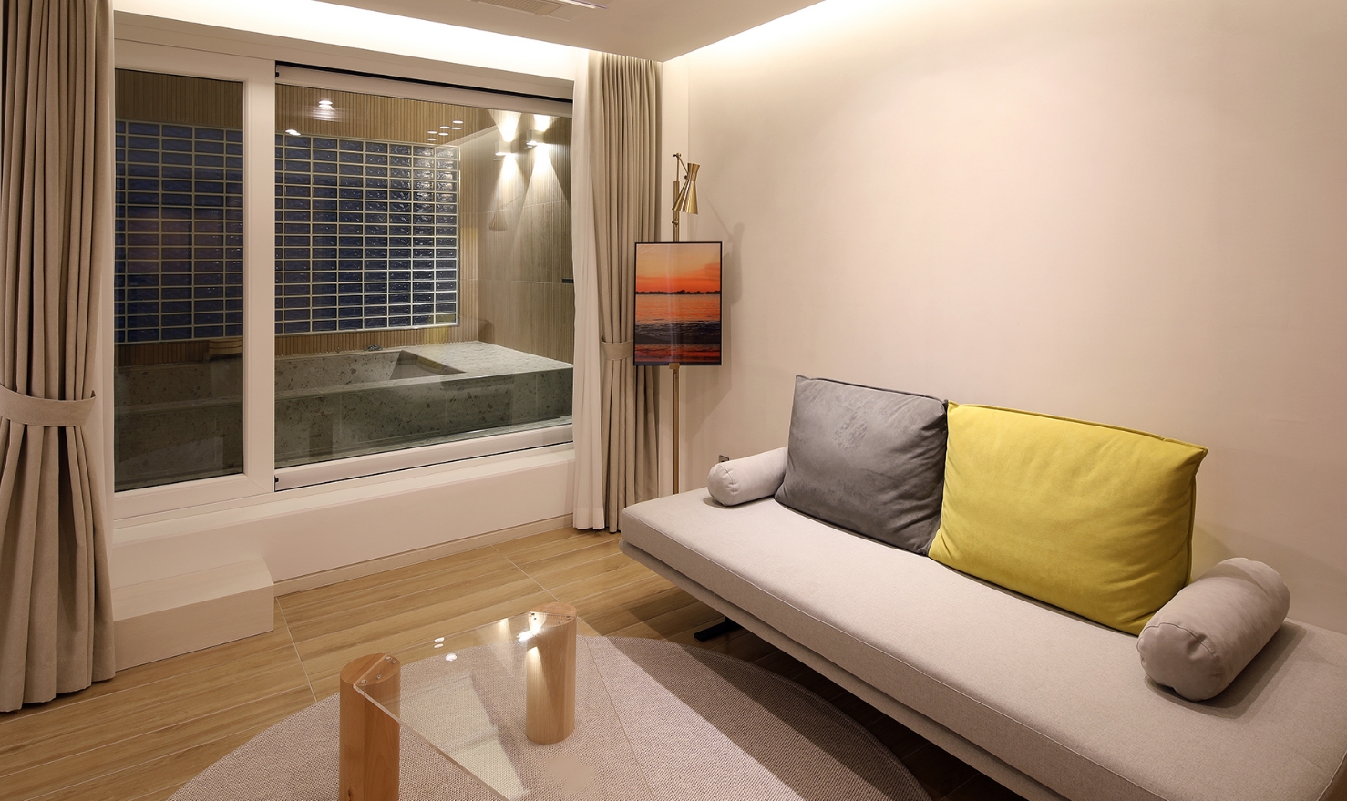 급 울진 여행, 숙박은 우연찮게 덕구온천호텔에 묵게 됐어요. 정보 없이 숙박했는데 외관과 달리 실내는 리모델링되어 깔끔해요. 객실 마루 바닥이라 대만족! 창가 벤치 의자가 물건 올려 두기도 좋고 편해요. 바닥 깨끗하고 콘센트가 많아서 충전기를 어디든 꽂을수 있어요.