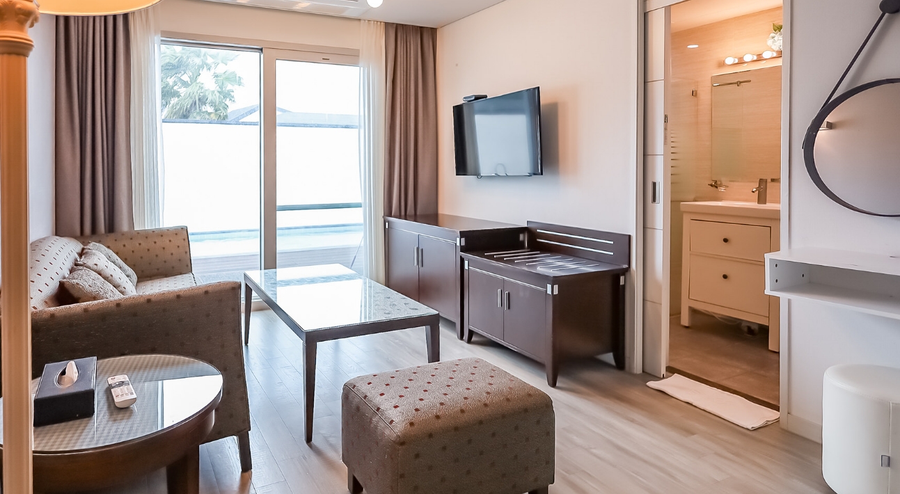 객실 상태는 그럭저럭..이불에 뭐가 묻어 있었지만 엄마가 뭐라 할까봐 못 본 척 했다. 개미가 많은데 화장실 앞을 지나가서 아이가 무섭다고 해서 화장실을 안고 다녀줘야했다 프론트에 말하니 약을 갖다주셔서 뿌리고는 안보임. 날씨운이 없어서 너무 추워 벌벌 떨며 수영 ㅠ바람이 너무 찬데 야외라서 얼어 죽을 뻔. 둘째 날도 바람이 불고 추워서 30분도 못하고 나왔는디 온수가 안나옴 ㅠㅠ직원이 오셔서 보셨는데 옆 방에서 온수를 다 써서 30분 후에 온수사 차니 기다리라고 하고 가심. 울 아이 벌벌 떨며 입술 시퍼래져서 엄마랑 정수기 물 퍼 날리며 아이만 우선 씻김ㅜ