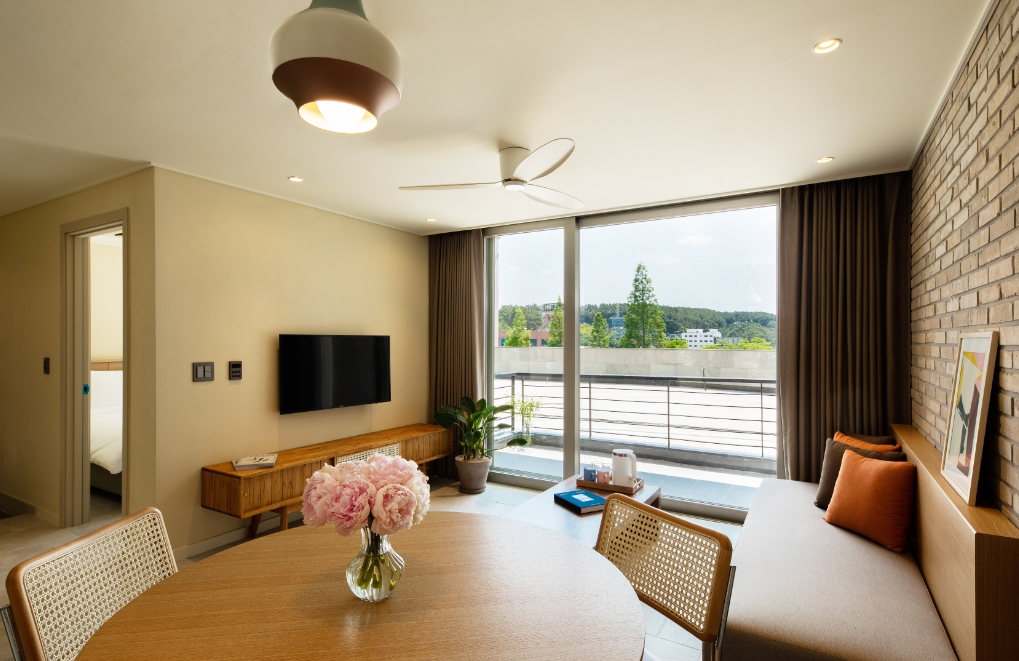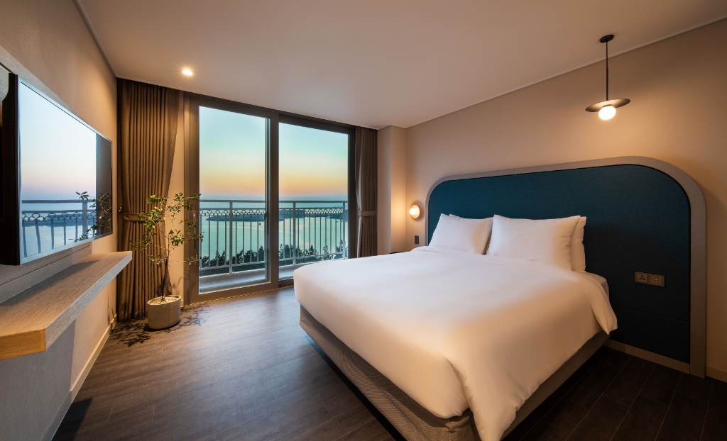 이 리조트는 룸 보다 리조트의 루프탑이 제일 좋았습니다. 룸에서 보이는 뷰는 so so하지만 루프탑에 올라가면 완전 멋진 서해를 만날 수 있습니다. 꼭 루프탑에 올라가 보세요. 리조트에서 먹을 수 있는 세트 음식을 포장해서 와인과 마셨는데 너무 좋았어요. 와인잔이나 오프너도 프론트에서 빌려주더라구요. 어반 마루는 침대가 아니라서 저는 좀 불편했어요. 저상이지만 침대랑 똑같겠지 하는 생각이었는데 직접 써 보니 불편했으니 참고하세요