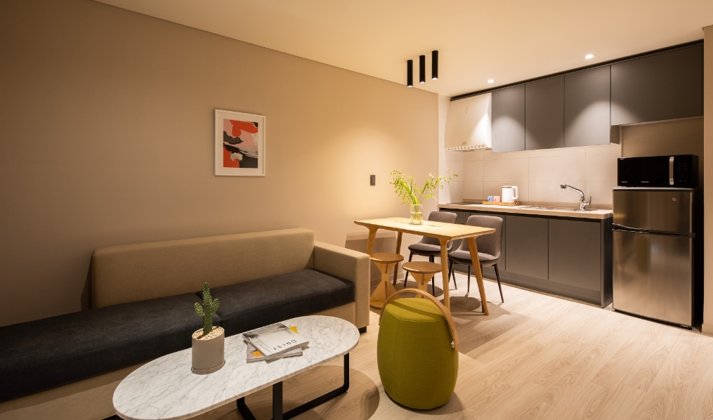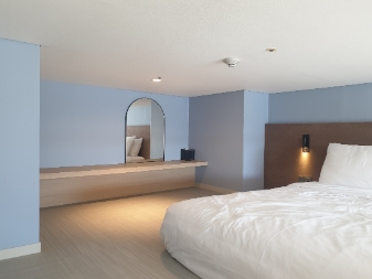 4. 복층 객실의 2층은 층고가 매우 낮아서 불편하며, 테라스에 의자 한 개도 없어서 테라스는 있으나 딱히 의미가 없습니다. 소파도 딱딱하고 얇은 매트만 있고 별도의 커버가 없어 앉기 매우 찝찝했습니다. 전체적으로 인테리어 퀄리티는 호텔이 아닌 좀 비싼 모텔 정도입니다.