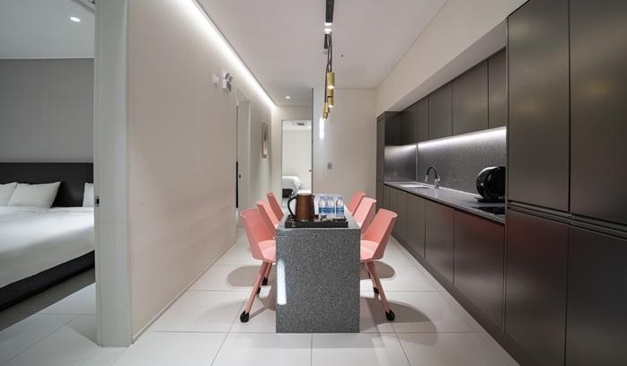 샴푸, 헤어 컨디셔너, 바디워시, 폼클렌징이 있었고 여기서 마음에 들었던 것은 폼클렌징이 있다는 점이 정말 만족스러웠습니다! 화장실 거울 옆에는 고데기와 헤어드라이기가 비치되어있었고 화장실 거울 외에는 객실 내에 거울이 없어서 거울을 볼 때에는 화장실을 가야한다는 점이 조금 아쉬웠습니다 객실 내에도 거울 하나 비치해주셨으면 좋겠습니다! 그리고 객실 내에 프론트로 전화할 수 있은 유선 전화기가 배치되어 있지 않아, 필요한 경우에는 개인 휴대폰으로 문의를 넣어야 하지만 워낙 있을 건 다 있어서 불편함을 느끼진 못했습니다.