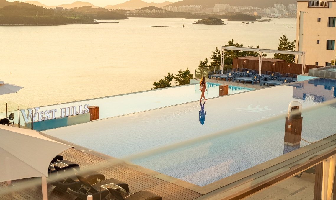 웨스트힐스에서는 파란 바다,노을지는 붉은 바다, 보라빛 바다 다 볼수있어요! 그리고, 빼놓을 수 없는 얘기!! 풀장..!!!!!! 온수풀, 진짜 찐찐찐 온수풀이예요~발 담그자마자 와 따뜻하고 따땃해요~ 덕분에 오랫동안 풀장에서 놀수있었고, 늦은 저녁 밤 8시에도 따땃히 수영하며 놀았습니다♡♡♡ 너무너무 행복했고 최고의 숙소같아요! 다음 여수때도 꼭 또 올께요 인피니트풀에서 노을지는 시간에,인생 사진도 건졌어요>_< 룸에서 바라본 너무 이쁜 바다 풍경들 사진 올립니다!