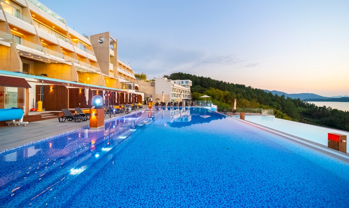 인피니티 풀에서 바다와 노을을 바라보는데 정말 아름다웠습니다. 외국인 안전요원 분이 상시 대기중이셔서 안전하게 물놀이할 수 있었고, 튜브도 대여가 가능한 것 같더라구요. 밤에 보니까 일반 풀을 제외하고 온수풀은 매일 물을 청소하고 갈으시는 것 같아 청결 부분에서도 만족스러웠습니다.