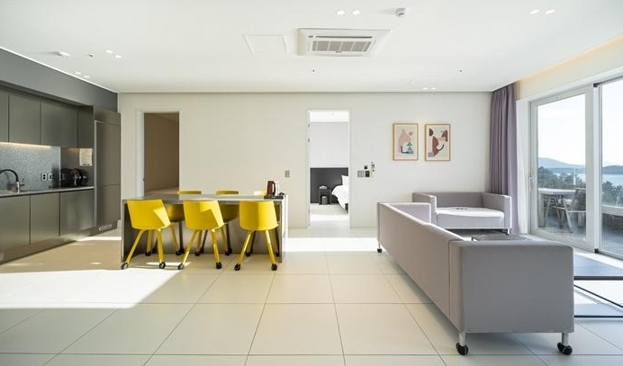 아이들이 물이 따뜻하다고 좋아해요. 물이 온천같네요. 소떡소떡이랑 핫도그 먹었는데 가져다주시고 친절해요. 맛있었어요. 아이 추가 요금 1인 2만원 있어요. 테라스에서 뷰가 너무좋고, 침구랑 침대가 좋아서 꿀잠자요. 브런치 세트는 미리 주문하면 좋을거같아요. 아침수영은 안된다고해서 그게 아쉬웠어요. 요트 타는 곳이 바로 앞이에요. 방음좋아요. 난방이 후끈해서 약간 더웠어요.