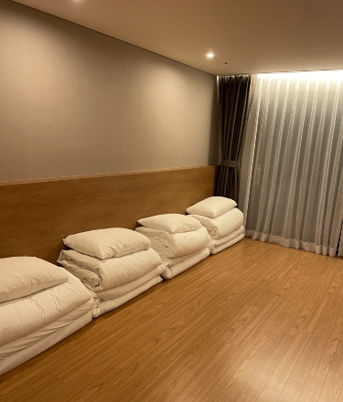 장점: 바닥 난방. 미니 주방 (취사는 안됨. 가스렌지 자리 비어있음) 간단하게 텀블러 씻고 하기 편했다. 주차가 반 실내라
