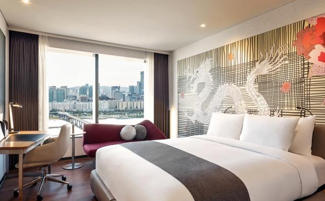호텔 내 객실은 총 621개로, 모던하고 깔끔한 디자인으로 꾸며져 있습니다.
