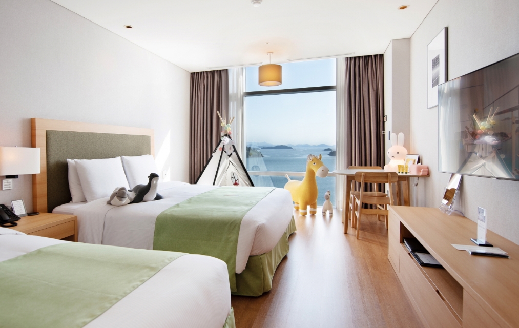 전 객실에서 아름다운 여수 바다의 일출과 일몰을 감상할 수 있습니다