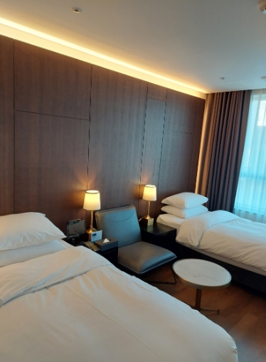 냉난방 설정을 처음 접했을 때는… 저에겐 다소 어렵게 느껴졌어요. 물론 설명서가 있습니다! 침대와 화장실 룸 컨디션은 너무 깔끔하고 푹신해서 마음에 들었어요! 그리고 침대 옆 협탁에 알람도 설정할 수 있는 호텔 패드가 따로 있습니다! 패드로 청소 시간 예약도 가능했는데, 이튿날 외출 시간이 오후 2-3시라 예약은 못 했거든요ㅜㅜ 그럼에도 돌아왔을 때 깔끔하게 정리되어 있어서 기분이 너무 좋았습니다. 다음에 또 대전에 오게 된다면 이용하게 될 것 같아요!