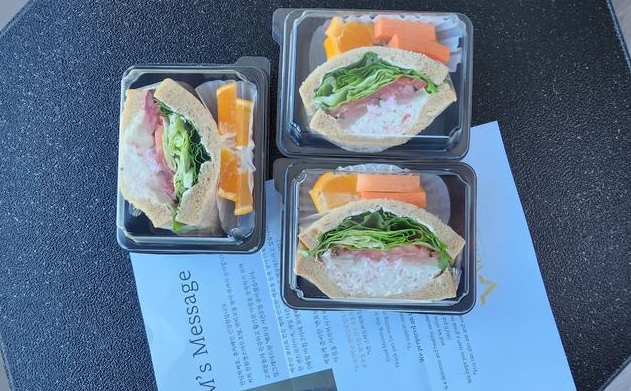 아침마다 빈속으로 여행시작하지 않게 주시는 샌드위치와 과일도 굿입니당 다만 다소 불편했던 점은 꽤 높은 빌딩임에도 엘리베이터가 1개라 오래 기다려야하는 상황도 여러번 발생했고, 방과 화장실이 생각보다 화장하기엔 어두워서 화장품을 들고 가장 불이 밝게들어오는 현관에 서서 화장을했네요