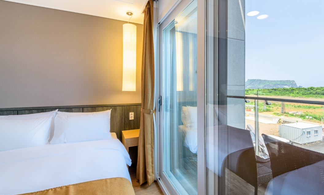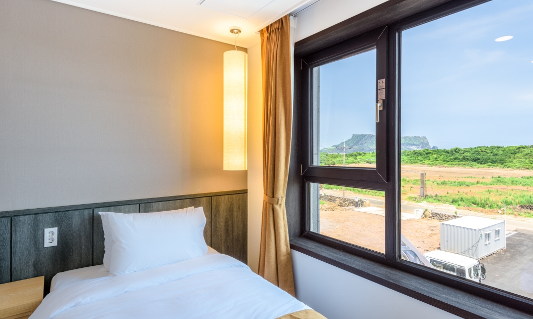 성산에는 숙소가 다양한데, 티라호텔은 가성비 좋고 편히 쉬기 좋아요 무엇보다도 일출봉 뷰라는 것이 장점! 편의시설이 많진 않지만 4층 무인카페도 이용가능하고 일출을 보기에 위치가 정말 좋아요 작년에도 일출을 보러 4층을 이용했는데 조용해서 일출보기 좋았어요