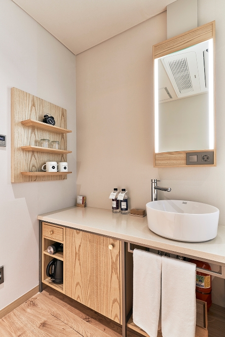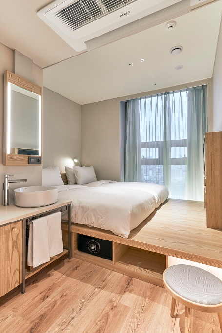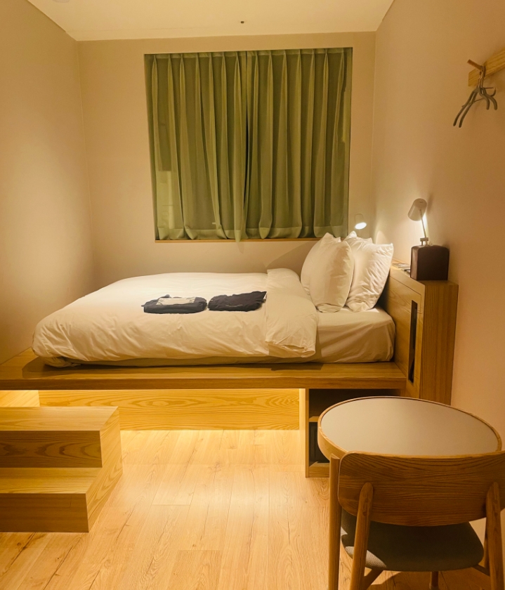 객실 상태도 양호했고 어메니티는 비누였어요. 생각보다 거품이 잘나서 신기했던! 칫솔세트는 사야합니다 2000원 ㅎㅎㅎ베딩 상태 양호하고(가격 대비 베딩이 좋더라고요???) 장점이 많았어요! 단점으로는 룸이 조금 많이 작다는것? 같은 가격대비 다른 호텔보다 작은 것 같습니다. 그래서 샤워실도, 룸도 작아요. 그리고 계단으로 올라가야해서 침대까지 새벽에 다칠 위험이 있습니다. 아 그리고! 주차가 기계식 주차에요 이 가격대가 다 그런것 같아 특별한 단점은 아닌 것 같습니다. 이외에 베딩, 청결, 모든 면에서 꽤나 만족스러웠습니다!